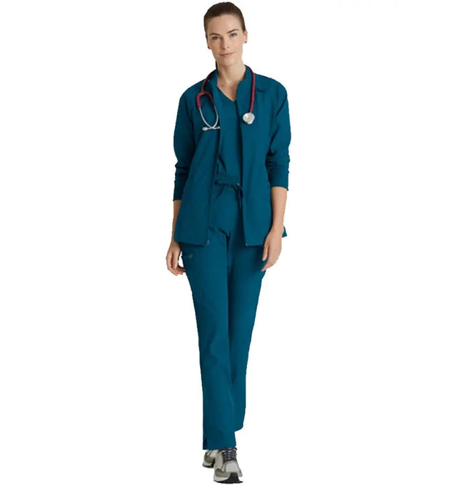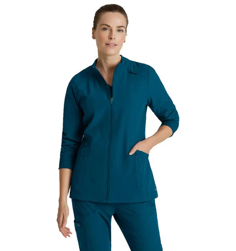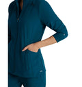 Combines classic athleisure style with modern functionality. Designed for those who need both style and practicality in a healthcare setting, this eco-conscious jacket is made from sustainable materials while offering features tailored for comfort and convenience. With its sleek design and thoughtful features, the Venture scrub jacket is perfect for healthcare professionals who want to stay both professional and comfortable throughout their shifts.