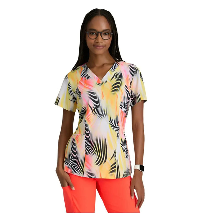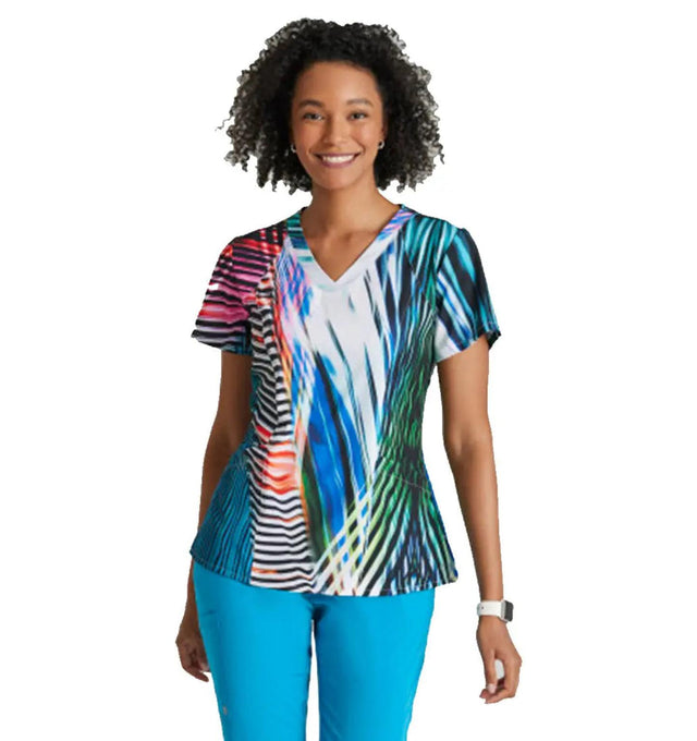 The Thrive 4-Pocket V-Neck Print Scrub Top from Barco One™ by Barco Scrub Top
