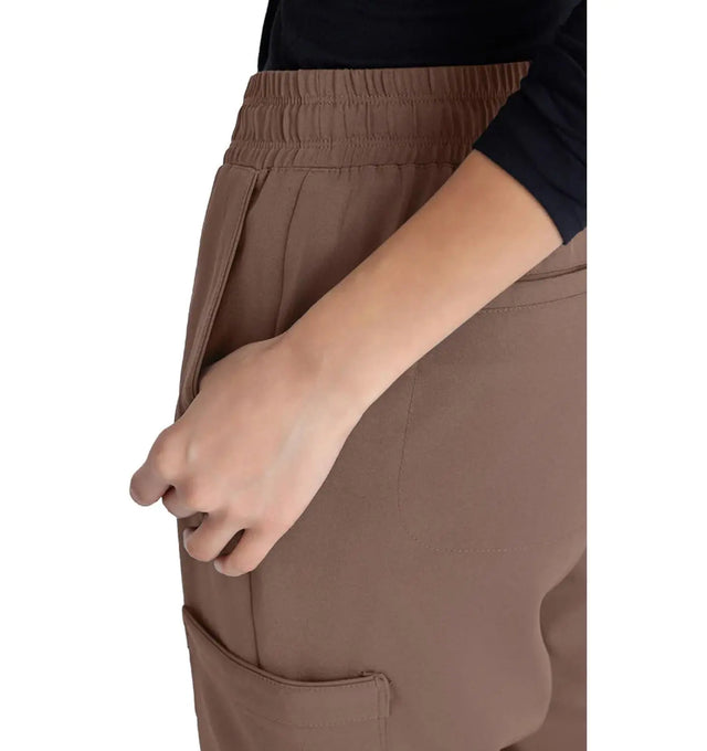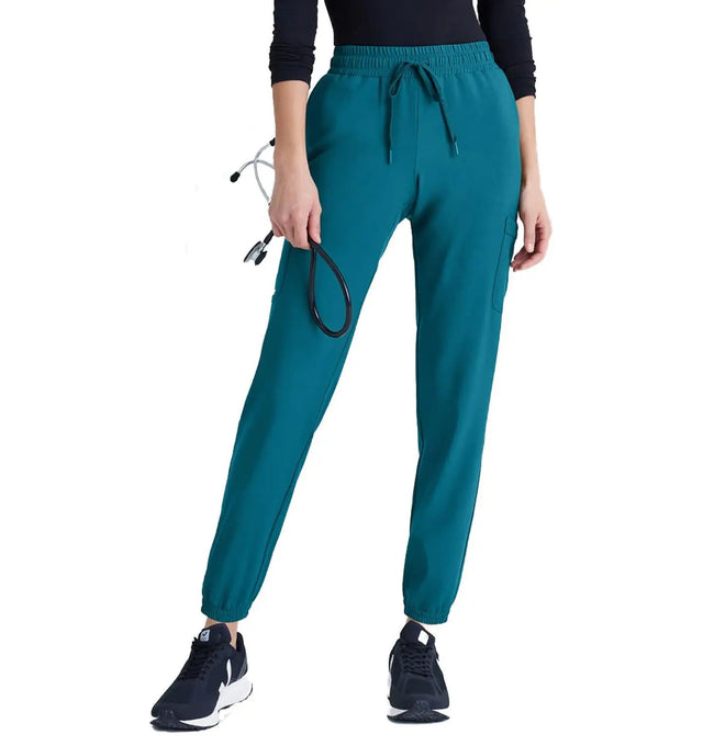 Embark on a new level of comfort and style with the Barco W6pkt Dbl Cargo Jogger Pant from the Grey's Anatomy Evolve collection. Designed for those navigating the demands of their professional journey, these joggers offer a modern fit with a mid-rise and an elastic waistband for ultimate comfort. The fabric, crafted with CiCLO® technology and recycled polyester, is not only soft and breathable but also aligns with eco-conscious values.