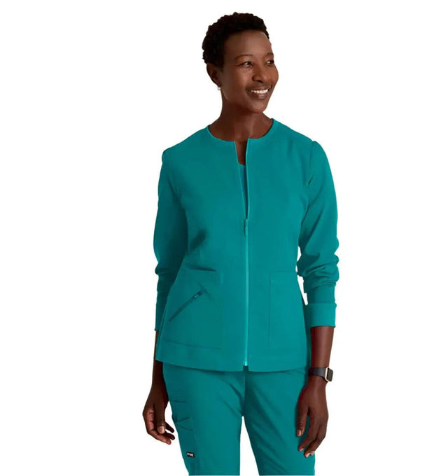 Stay comfortable and professional during shifts with the Grey's Anatomy Stretch™ by Barco Scrub Jacket.