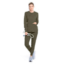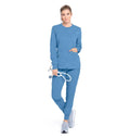 Millie Crewneck Scrub Jacket. Designed with spandex-stretch fabric, this scrub jacket combines style, functionality, and comfort. With moisture-wicking and soil-release properties, it keeps you looking and feeling fresh throughout your busy day. Perfect for layering, this jacket also features deep pockets to keep your essentials secure and within reach.