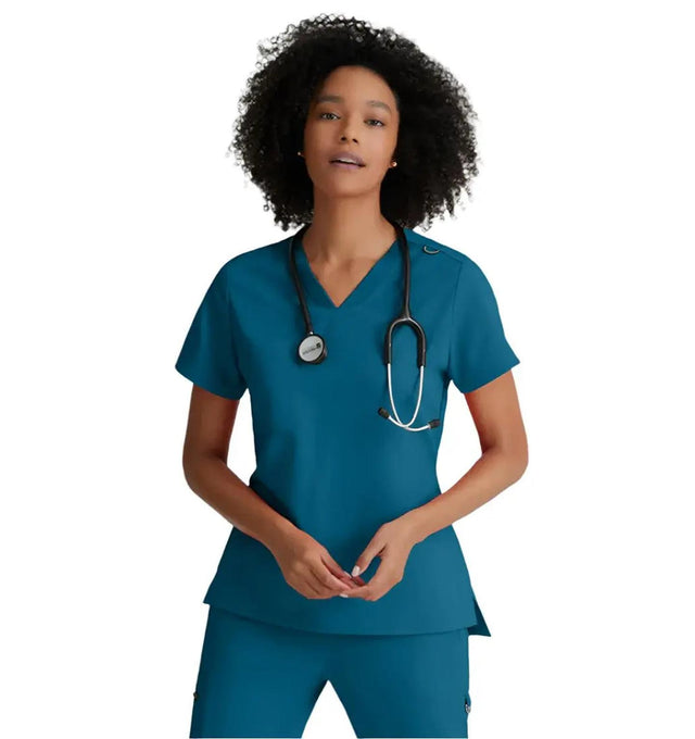 The Grey's Anatomy Stretch™ by Barco Bree 1-Pocket Tuck-In Scrub Top.