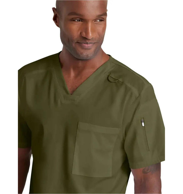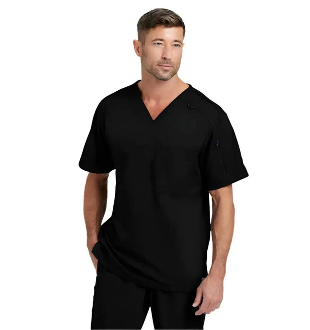 Blends classic style with modern functionality. This scrub top is designed for healthcare professionals, with anti-wrinkle, anti-static, and antimicrobial fabric that keeps you looking polished, feeling comfortable, and staying fresh all shift long. This top features two convenient pockets, including a chest pocket and a zippered sleeve pocket, ensuring you’re always prepared on the go. A soft-stretch, moisture-wicking fabric provides comfort and durability while maintaining a sleek professional look.