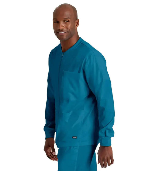 The React Crewneck Warm-Up Scrub Jacket from Grey's Anatomy Stretch™ by Barco Scrub Jacket.