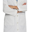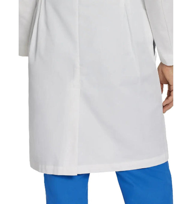 Functionality is ensured with three essential pockets: one chest pocket for writing tools and ID, and two lower patch pockets ideal for carrying instruments, notepads, or other daily tools. Side slits provide easy access to pants pockets underneath, making this coat an effortless top layer for rounds, teaching, or procedures.