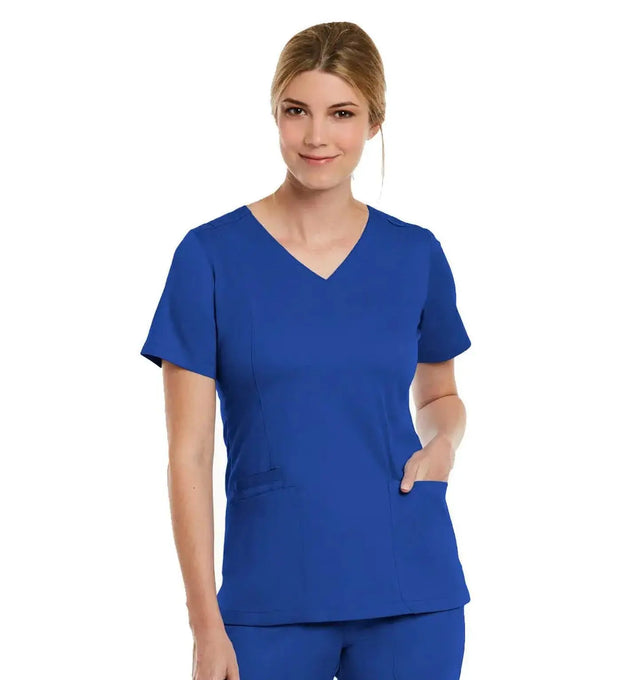 Our durable double V-neck scrub top in creates a visually flattering look through your shifts. Made with long-lasting and ultra-durable material, you can count on great comfort and function with a stylish fit. It's the perfect way to add a little edge to your day's look.