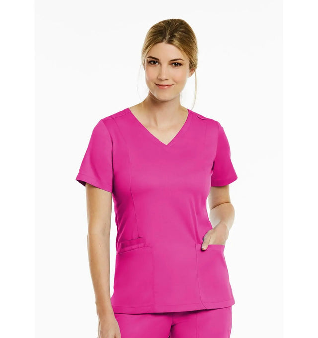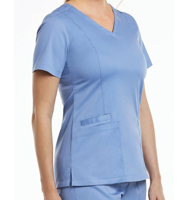 Our durable double V-neck top creates a visually flattering look through your shifts. Made with long-lasting and ultra-durable material, you can count on great comfort and function with a stylish fit. It's the perfect way to add a little edge to your day's look.