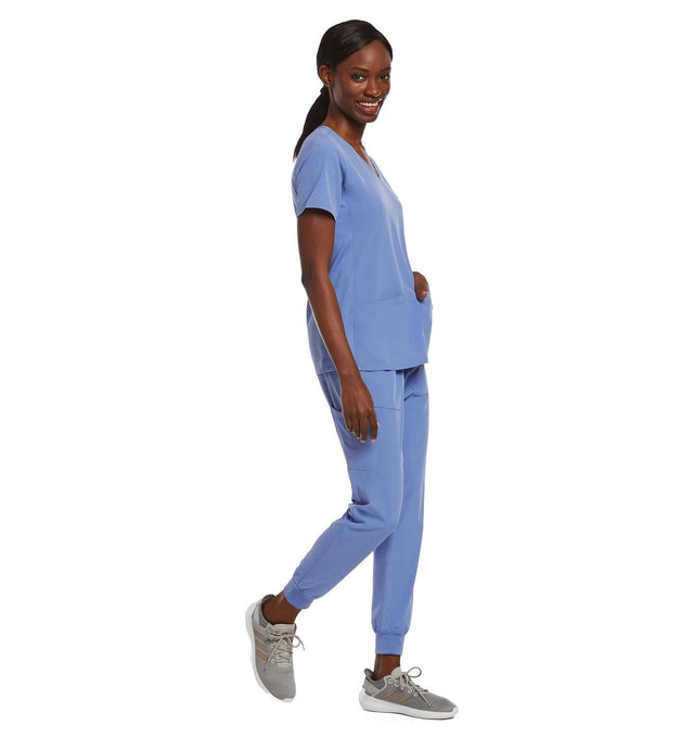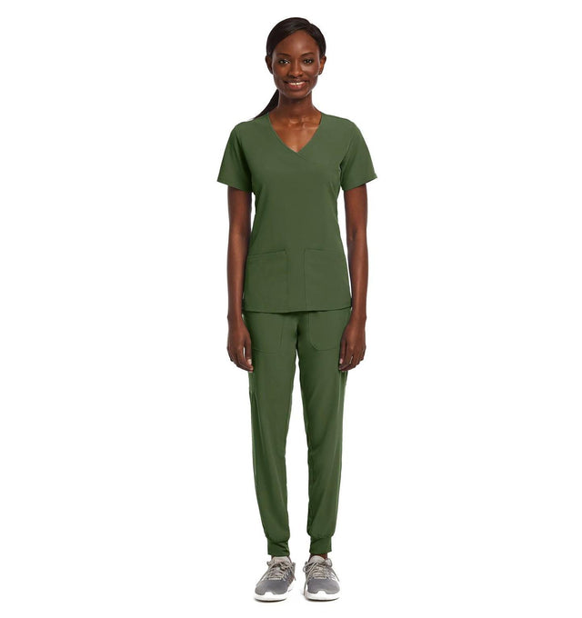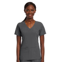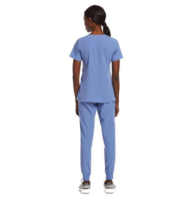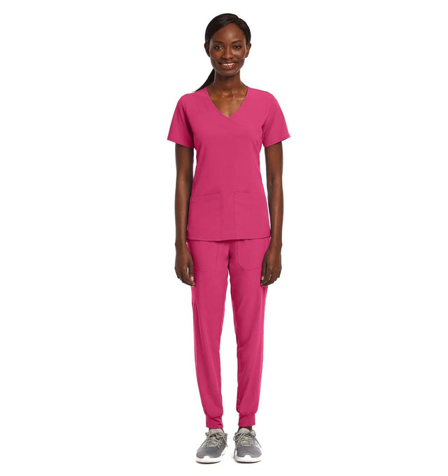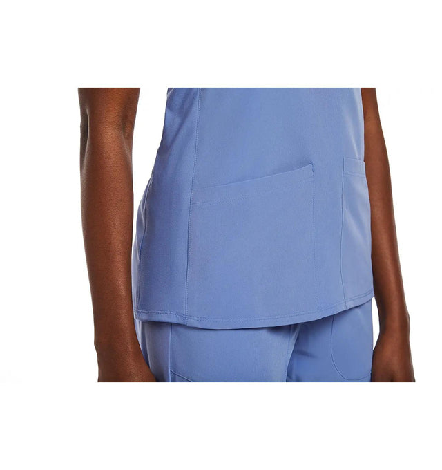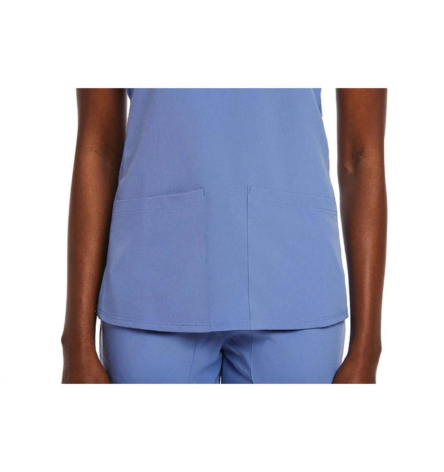 The best scrub tops are comfortable and versatile, which the Maevn 4521 Knitted Panel Mock Wrap pulls off seamlessly. The mock wrap features back darts and princess seams to shape your body so that you can feel good while confidently whipping scissors or adhesives out of your patch pockets.