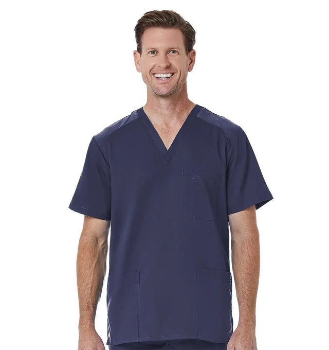 Maevn's Eon collection introduces Invista's COOLMAX fabric technology which uses fibers specifically designed to remove moisture from the skin, keeping the medical professional cool and dry. The 3-pocket V-neck top offers great storage options. This light, soft and breathable mesh fabric also has side vents that improve comfort while maintaining a professional look.