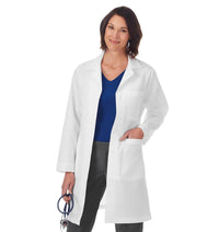 Finding a lab coat to accommodate taller than average height women with long limbs just became easier. This Meta 37" lab coat is specially designed for tall women, and the arm length, shoulder width, and pocket placement are ideal for tall bodies. This lab coat's stretchy fabric offers the comfort and breathability of traditional poly-cotton blends but comes with stain lift technology. This coat is perfect for lab work or any profession where you need to look your best.