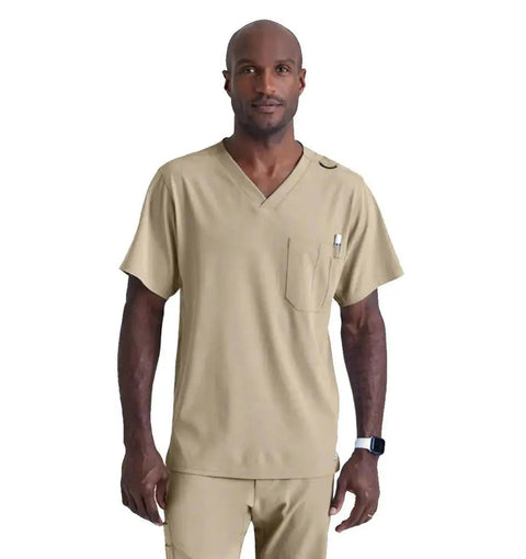 Designed for the modern healthcare professional who values both comfort and functionality. Featuring 4-way stretch fabric that moves with you, this top offers ultimate comfort while keeping you dry with its moisture-wicking properties. The V-neck design provides a professional yet stylish look, while the chest cargo pocket and bungee loop allow for convenient storage and easy access to your essentials, including your badge. Made with eco-friendly fabric from recycled bottles, this scrub top is not only practical but also environmentally conscious.